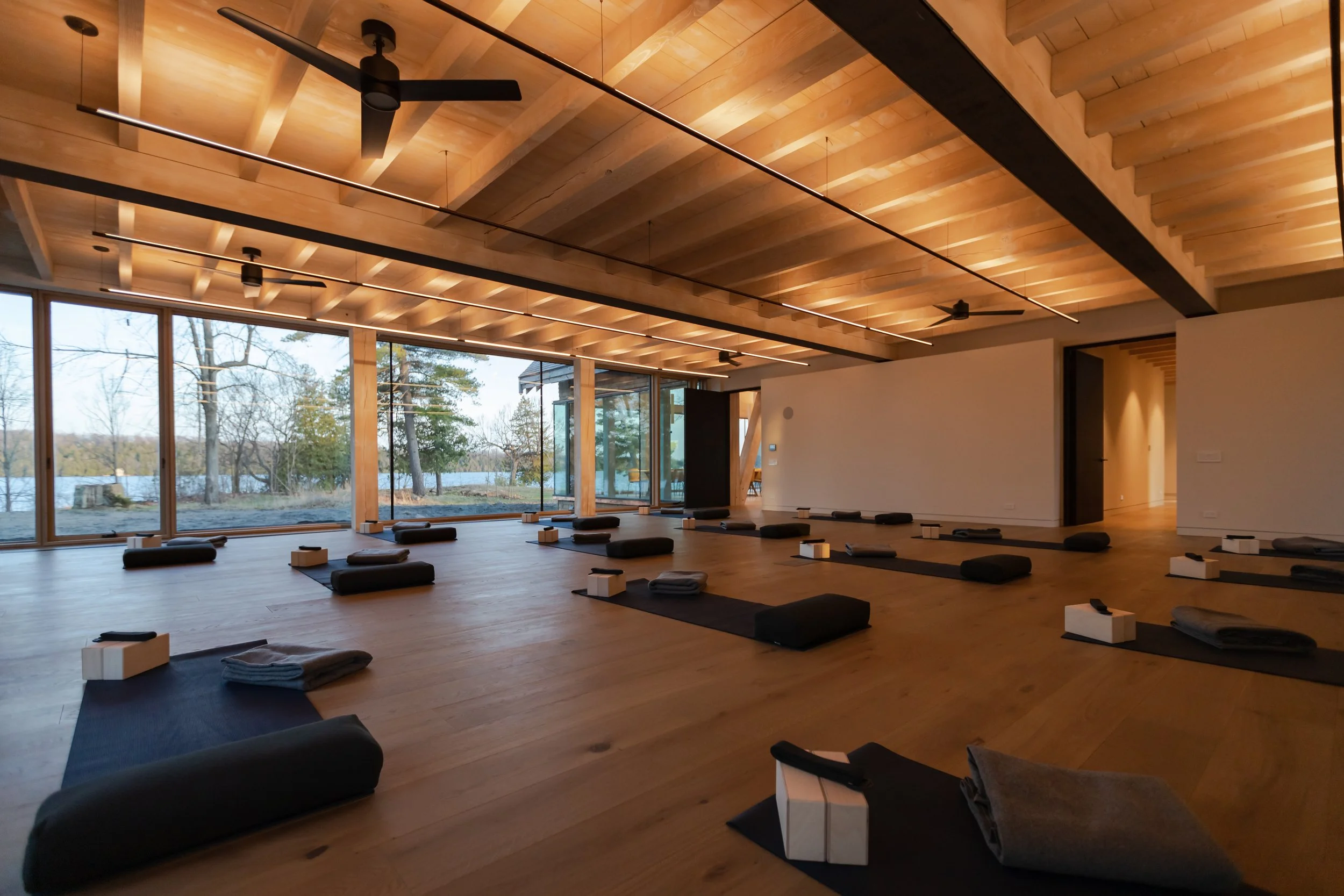 This stunning meditation and wellness centre (thoughtfully designed by celebrated architect Siamak Hariri) is situated on a quiet lake with over 900 acres of biodiverse boreal forest. The venue maintains a deep sense of place while offering unparalleled comfort.